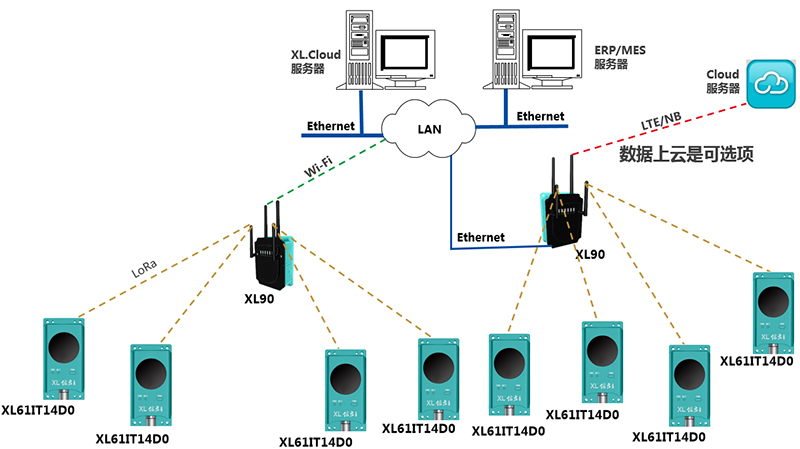 通信網(wǎng)絡(luò)設(shè)計:在每個配電室,或是監(jiān)測點較集中的區(qū)域,安裝XL90物聯(lián)網(wǎng)關(guān):