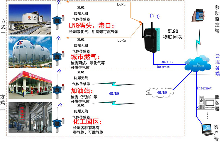 化工園區(qū)生產(chǎn)安全監(jiān)控系統(tǒng),基于無線傳感器、智能環(huán)境監(jiān)測(cè)終端、物聯(lián)網(wǎng)關(guān)、無線采集裝置、監(jiān)控服務(wù)器和XL.VIEW上位機(jī)監(jiān)控軟件等,實(shí)現(xiàn)對(duì)園區(qū)生產(chǎn)環(huán)境的各項(xiàng)要素(如有毒有害氣體、易燃易爆氣體、風(fēng)向風(fēng)速、氣壓、雨量、溫濕度、粉塵、煙感等)進(jìn)行實(shí)時(shí)采集、無線傳輸、監(jiān)測(cè)與預(yù)警。