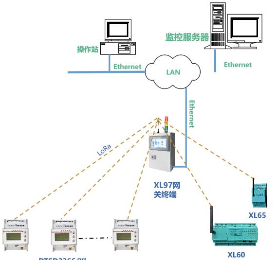 XL60無(wú)線上傳數(shù)據(jù)至現(xiàn)場(chǎng)監(jiān)控終端;或上傳至XL90物聯(lián)網(wǎng)關(guān)。