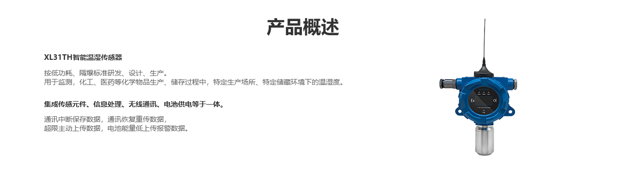 XL31TH智能溫濕傳感器,是按低功耗、隔爆標準研發(fā)、設計、生產(chǎn)。用于監(jiān)測,化工、醫(yī)藥等化學物品生產(chǎn)、儲存過程中,特定生產(chǎn)場所、特定儲藏環(huán)境下的溫濕度。