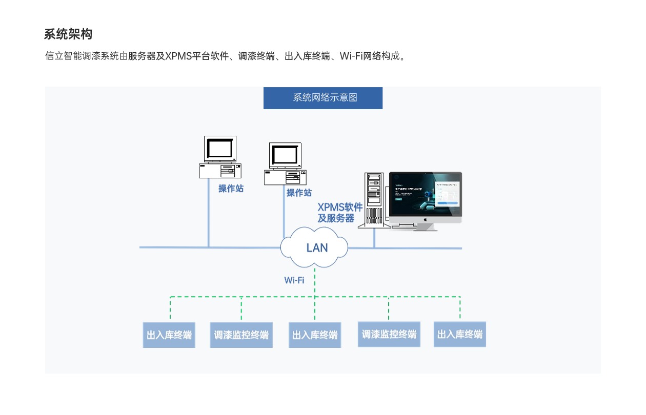 信立調(diào)漆管控系統(tǒng)XPMS,應(yīng)用工業(yè)物聯(lián)網(wǎng)技術(shù)、數(shù)據(jù)庫及智能化平臺(tái)軟件,標(biāo)準(zhǔn)、規(guī)范、指導(dǎo)、監(jiān)管調(diào)漆過程,實(shí)現(xiàn)調(diào)漆操作智能化、簡(jiǎn)單化,有效提升調(diào)漆質(zhì)量、減少漆料浪費(fèi),降低人為因素風(fēng)險(xiǎn),是一套智能化的調(diào)漆、制漆管控系統(tǒng)。