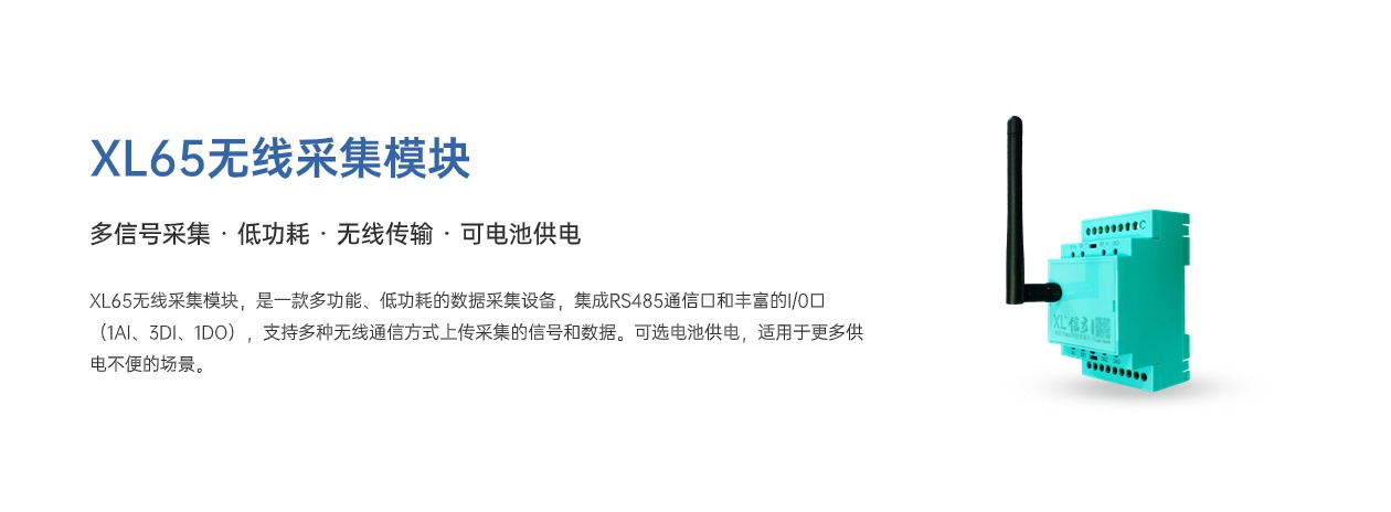 XL65采集模塊,用于監(jiān)測點(diǎn)分散、數(shù)量少、供電不方便的場景。電池供電,變位、超限觸發(fā)功能,更適用于變送儀表信號、開關(guān)接點(diǎn)信號采集。