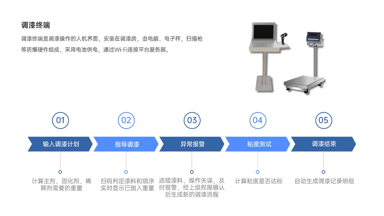 2、機(jī)械加工行業(yè),產(chǎn)品涂裝線油漆調(diào)和過(guò)程智能管控;