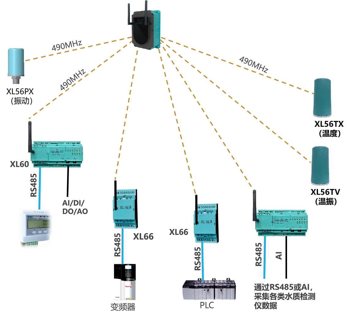 配1臺XL50或XL61CG智能采集裝置,采集流量計、水質(zhì)檢測儀等的數(shù)據(jù),通過無線上傳