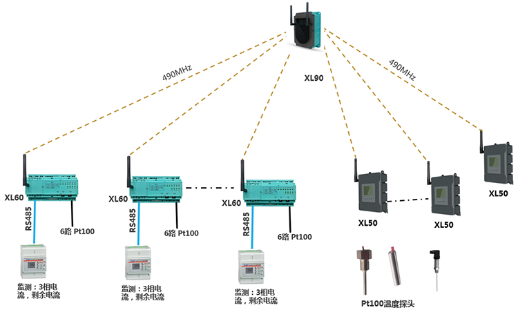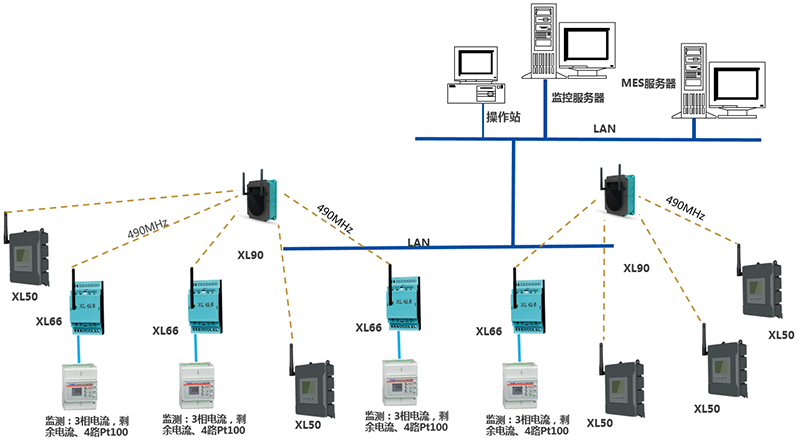 由2臺XL90物聯(lián)網(wǎng)關,35臺XL66無線轉換器、28臺XL50,及電氣儀表、溫度傳感器等等構成