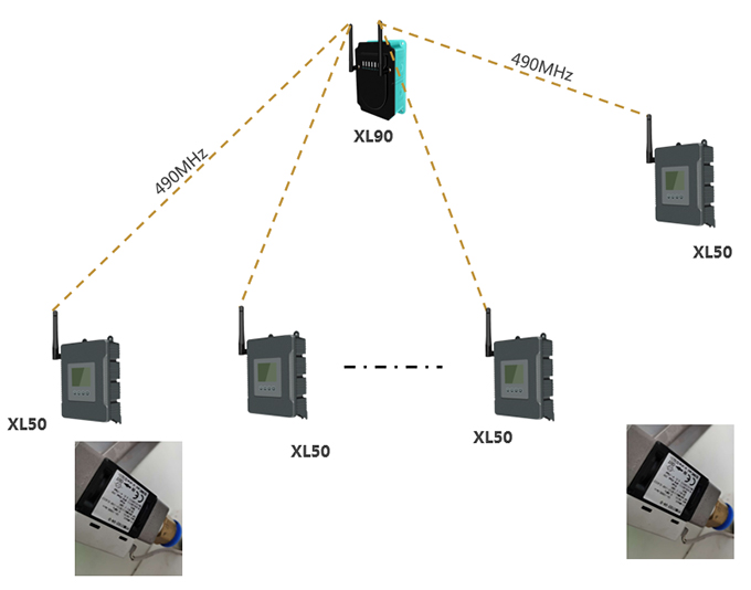 ?XL50通過(guò)無(wú)線,上傳瞬時(shí)流量、累積流量數(shù)據(jù)至XL90網(wǎng)關(guān)