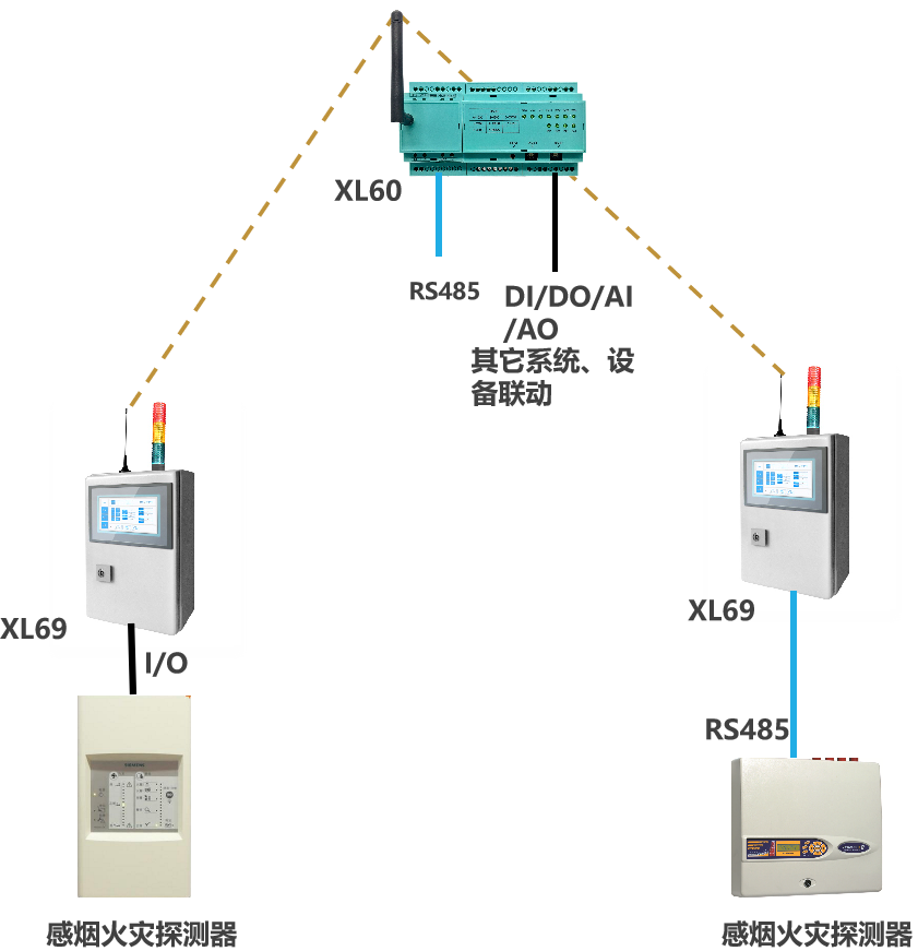 XL69智能終端,直接采集感煙探測器的信號(hào),無線上傳,遠(yuǎn)程測試、復(fù)位煙霧探測器;
