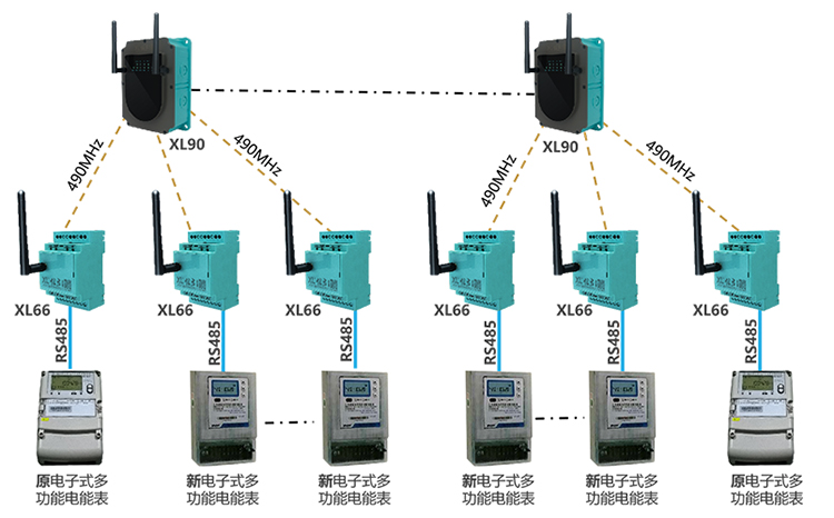 已安裝有電子式多功能電能表的電能監(jiān)測(cè)點(diǎn)(共有4個(gè)監(jiān)測(cè)點(diǎn)),每個(gè)監(jiān)測(cè)點(diǎn)配置1臺(tái)XL66智能轉(zhuǎn)換器,從電能表讀取用電數(shù)據(jù)上傳至XL90物聯(lián)網(wǎng)關(guān);