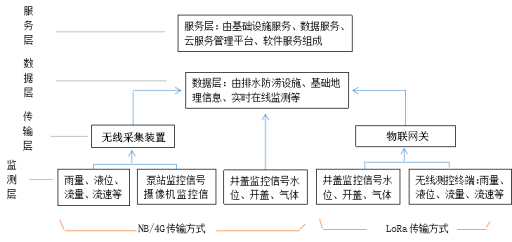 排水管網(wǎng)在線監(jiān)測(cè)系統(tǒng)利用低功耗遠(yuǎn)程測(cè)控終端等設(shè)備對(duì)雨量、水位、水量、流速、水質(zhì)、有毒有害氣體等信息進(jìn)行實(shí)時(shí)的采集,通過無線網(wǎng)絡(luò)進(jìn)行傳輸匯集,通過信息化管理、城市排水應(yīng)急管理、大型泵站綜合自動(dòng)化控制和水資源管理等多種應(yīng)用,服務(wù)于防汛抗旱、城市水務(wù)信息化、水資源監(jiān)測(cè)管理等多項(xiàng)業(yè)務(wù)管理。