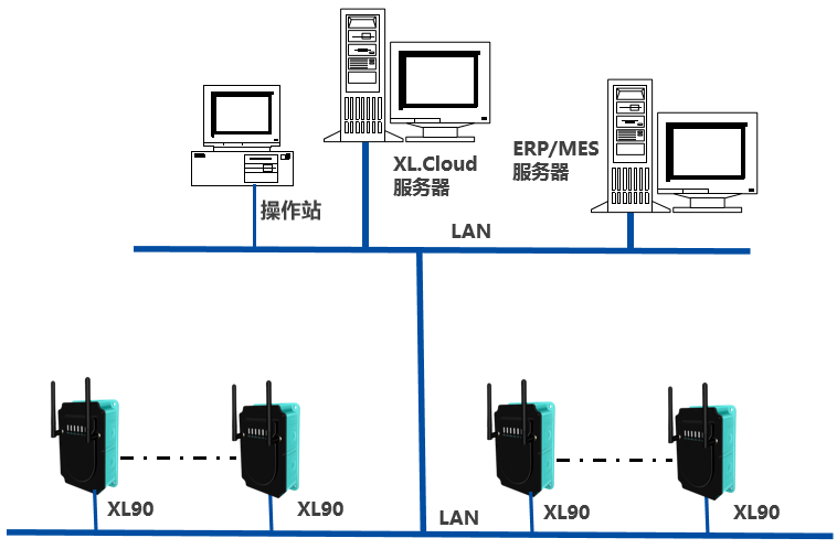 基于XIoT技術的貼片機電池電壓數(shù)據(jù)采集系統(tǒng),平臺由1套XL.Cloud軟件、1臺監(jiān)控服務器構(gòu)成;通信網(wǎng)絡多臺XL90物聯(lián)網(wǎng)關,及LAN構(gòu)成。