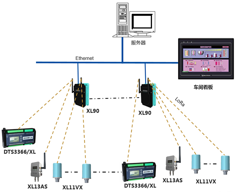 基于XIoT技術(shù)的回流爐運(yùn)行狀態(tài)數(shù)據(jù)集系統(tǒng),選擇DTSD3366/XL電力監(jiān)測(cè)儀表,XL13AS無線風(fēng)速傳感器、XL11VX無線振動(dòng)傳感器,采集回流爐運(yùn)行數(shù)據(jù),無線上傳數(shù)據(jù)至XL90物聯(lián)網(wǎng)關(guān):