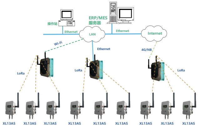XL13AS 無(wú)線風(fēng)管風(fēng)速傳感器通過 LoRa 無(wú)線傳輸方式,將數(shù)據(jù)上傳至 XL906 物聯(lián)網(wǎng)關(guān) ,網(wǎng)關(guān)可選以太網(wǎng)、 Wi-Fi 、 4G 通信方式,推送數(shù)據(jù)至監(jiān)管平臺(tái)、企業(yè)生產(chǎn)管控服務(wù)器等。