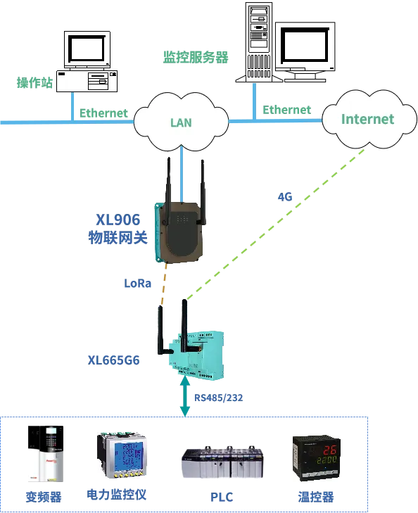經(jīng)由XL665無線轉(zhuǎn)換器輸出的LoRa信號(hào),可上傳至物聯(lián)網(wǎng)關(guān),接入監(jiān)控軟件平臺(tái);