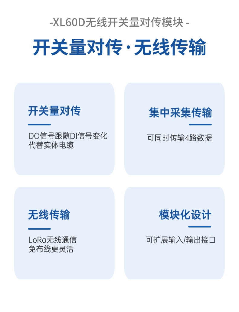 選擇XL60D無(wú)線開(kāi)關(guān)量對(duì)傳模塊,接收控制儀表的開(kāi)關(guān)量信號(hào)、輸出開(kāi)關(guān)量信號(hào)控制生產(chǎn)設(shè)備啟停。